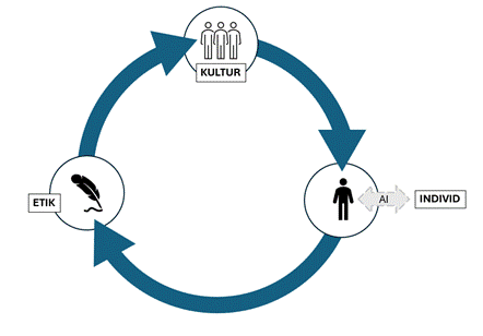 AI kommer in på den individuella nivån. Vi delar information med AI som skapar en feedback loop till oss. Om det växer sig tillräckligt stort kan det påverka individen och då det sker på en större nivå kan nya etiska kontrakt bildas som skapar kulturer. Det innebär att om vi inte är medvetna om vad vi kommunicerar till AI och tar emot av densamma som riskerar vi att skapa kulturer som vi faktiskt inte själva är ensamma skapare till – och det utan att vara medveten om det. Vi behöver en etik som kan införliva en samexistens med AI och där börjar Syntopismen (efter det inledande kapitlet om kommunikationsparadigmen och hur de tog civilisationen fram till idag).