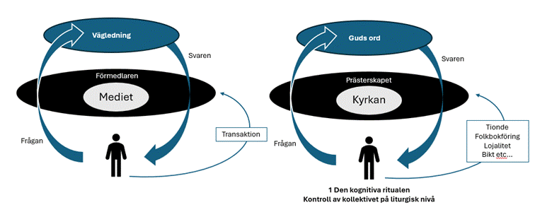 I kyrkan och under bibeln kunde människan hitta en samhörighet och en mening. Den aktiverar och strukturerar människans mentala upplevelser, känslor och tankemönster genom ritualiserade handlingar – på ett sätt som påverkar vår psykologi, minne, identitet och sociala sammanhållning. Själva ritualen i kyrkan med böner, psalmer och texter som också fördes ut i byarna och hemmen påverkade sättet att se världen.